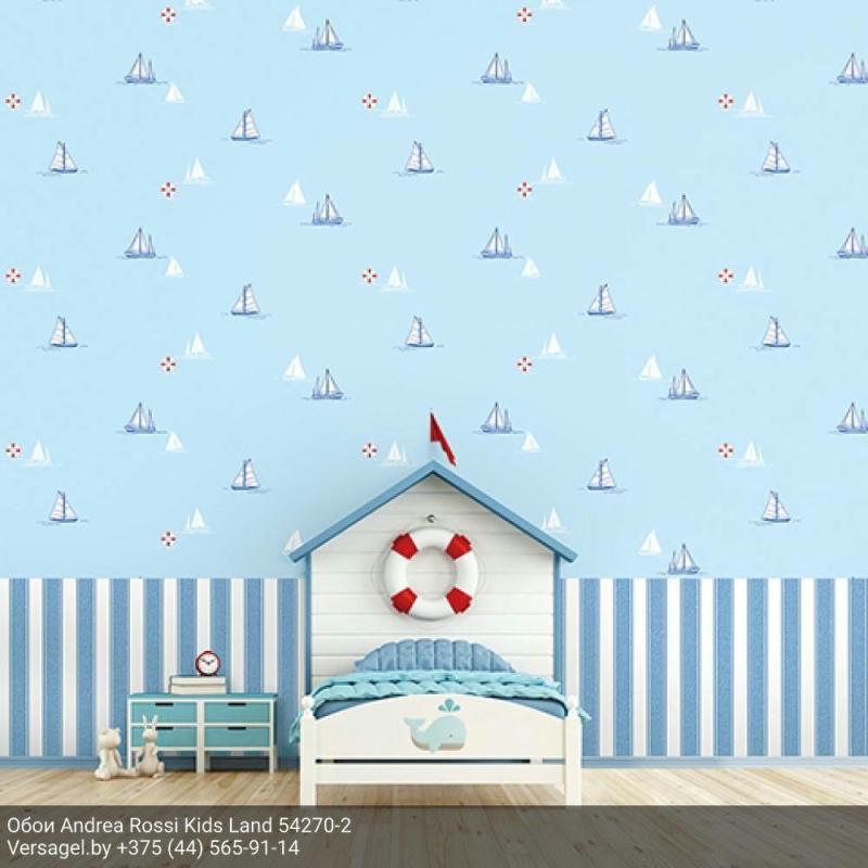 Обои 54270-2 от производителя Andrea Rossi коллекция Kids Land. Корейская фабрика итальянского бренда Andrea Rossi выпускает обои европейского качества. Цвет - голубой. Голубой цвет наполняет свежестью, но его нужно с осторожностью использовать в комнатах северной стороны. Страна производитель - Южная Корея. Вид обоев - виниловые. Рисунок морская тематика, детские для мальчиков, транспорт. Обои с машинами, паровозами, кораблями и дирижаблями – это мужская тема, но женщинам тоже нравится вид техники.